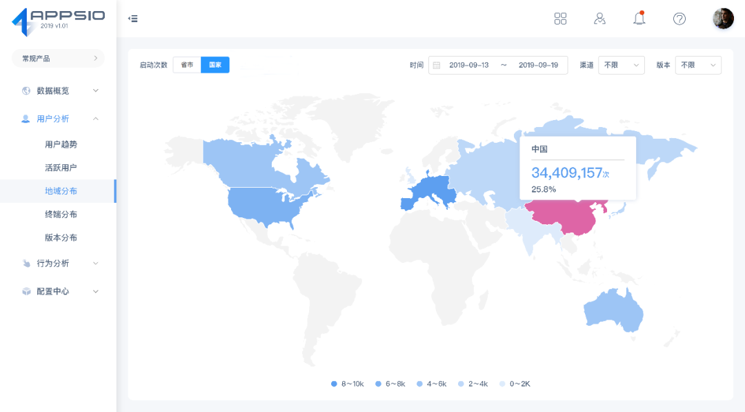 为了将移动应用的数据价值发挥到最大,热云数据AppsIO应用运营分析平台,通过分析用户的增长趋势,了解用户的构成和活跃情况。同时,通过对新增用户、活跃用户的启动次数、使用时长等行为数据展示,依托热云数据强大的大数据分析能力,对用户的地域分布、使用终端以及版本的数据展示及分析,实现对应用内用户行为的深度挖掘功能,精确定位用户属性,对优化产品和制定运营策略提供科学的数据支撑。