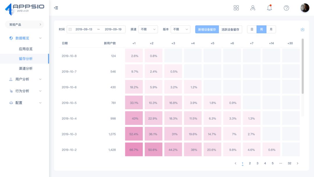 热云数据AppsIO应用运营分析平台,涵盖应用分析中的重要指标报表、多维度剖析用户属性、深度追踪用户行为,包含事件分析、页面分析等留存用户分析,精准定位流失,集中展现当前应用的核心数据指标。平台通过对产品日常运营核心业务数据的精准监测及趋势变化图,为移动应用的精细化运营决策提供数据支持,实现企业运营、数据分析人员对业务发展趋势的实时洞察,有效提升ROI。